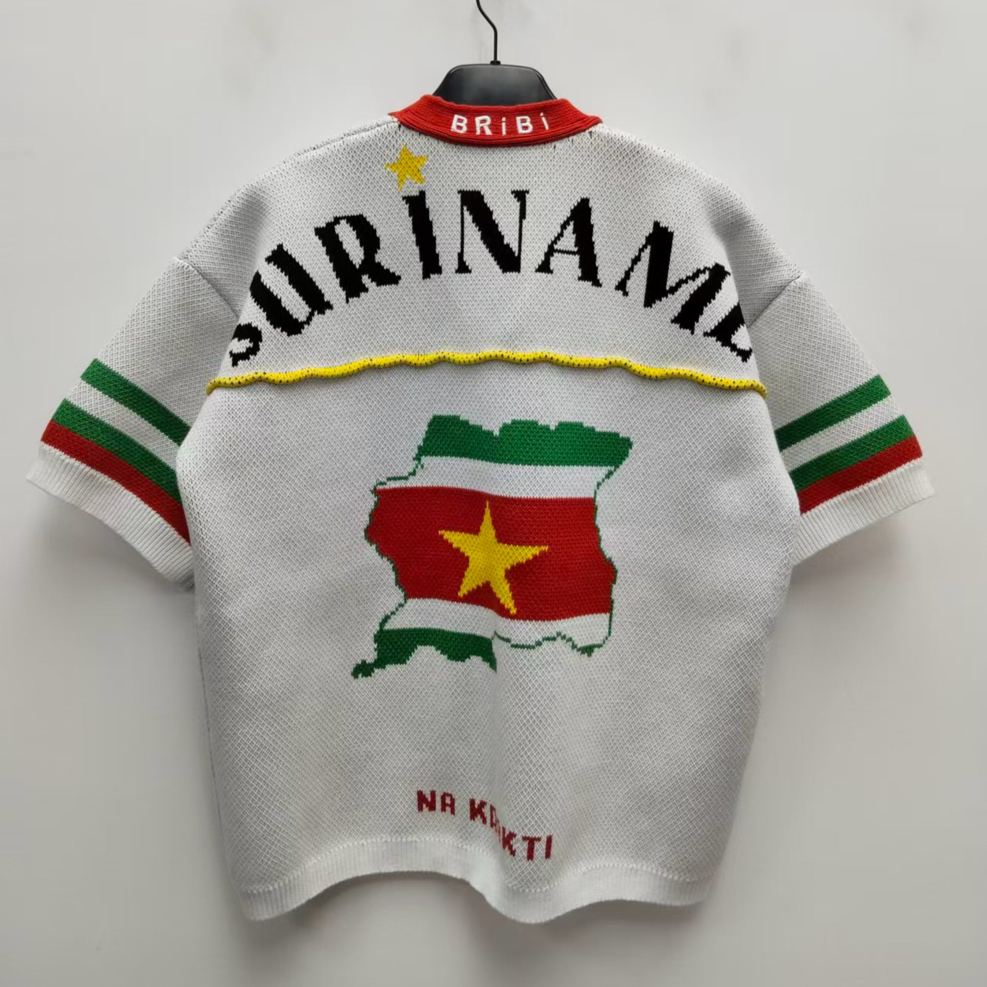 De Suriname Geweven Jersey v2 is een verfijnde ode aan Surinaamse identiteit en geschiedenis. Het ontwerp combineert nationale symboliek met een tijdloze uitstraling, geïnspireerd door erfgoed, veerkracht en culturele trots. Deze jersey vertelt het verhaal van afkomst, verbondenheid en vooruitgang gedragen met respect.